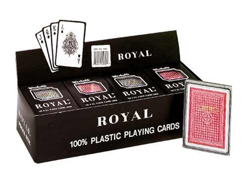 Each box of these Poker Sized Plastic Playing Cards contains 12 individual decks. The cards, stored within a protective plastic case, are made of 100% plastic/washable to ensure durability. Royal Brand. (These are better and last longer than the ones used in casinos) 3 1/2" x 2 1/2" (PROFESSIONAL CASINO SIZE)