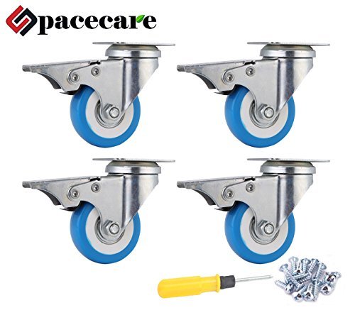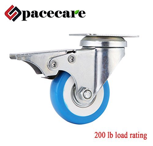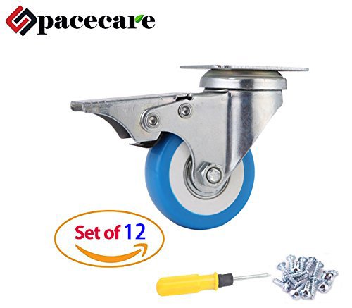 SPACECARE 12 Pack of 2" Swivel Caster Blue Polyurethane Wheels Base with Brake Top Plate & Double Ball (12)
