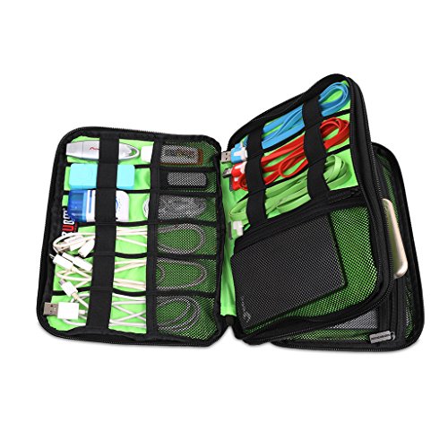 BUBM Universal Cable Organizer Electronics Accessories Case Various USB, Phone, Charger, Cable organizer Travel Organizer Cosmetic Bag- Double Layer Black