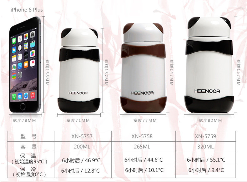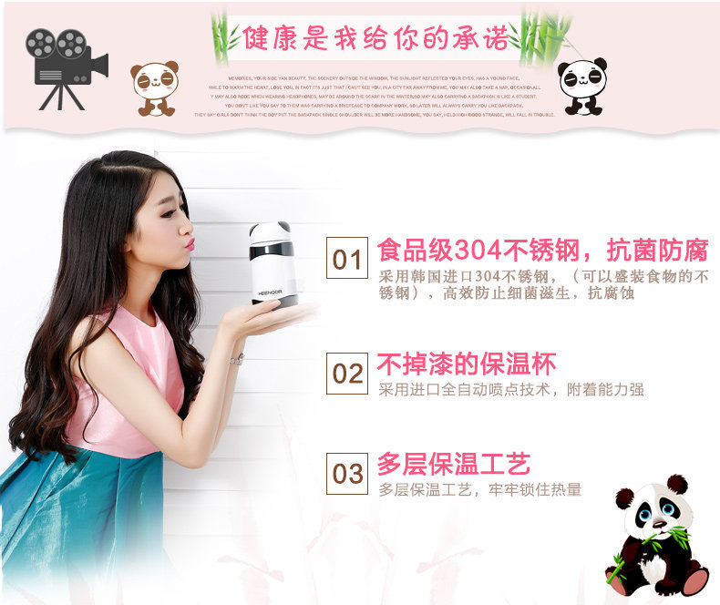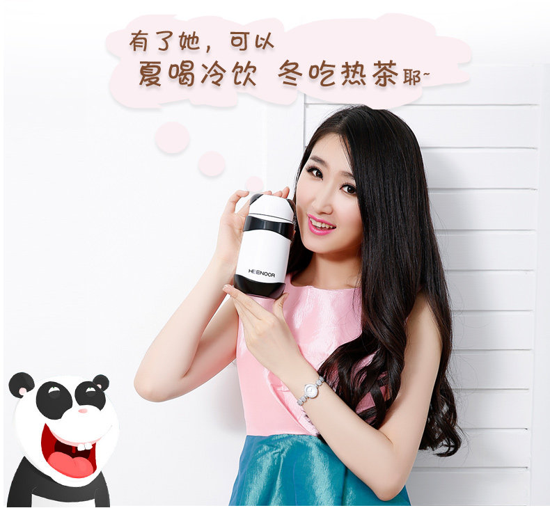 希诺保温杯女士便携可爱熊猫水杯创意迷你小巧不锈钢儿童学生茶杯