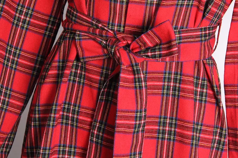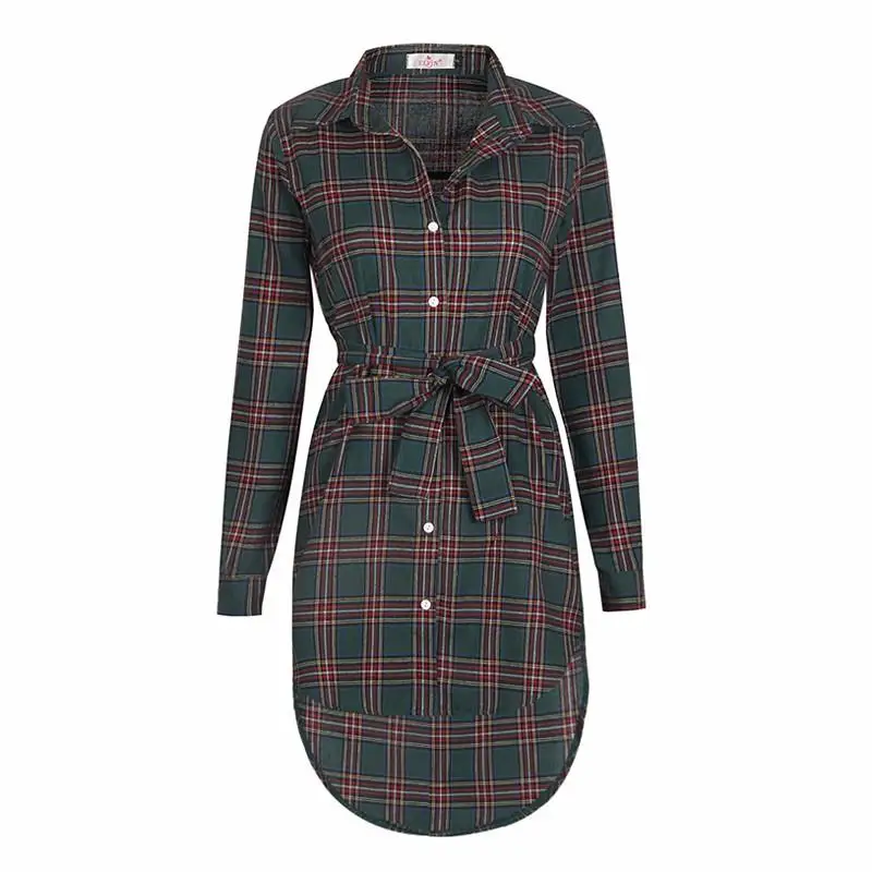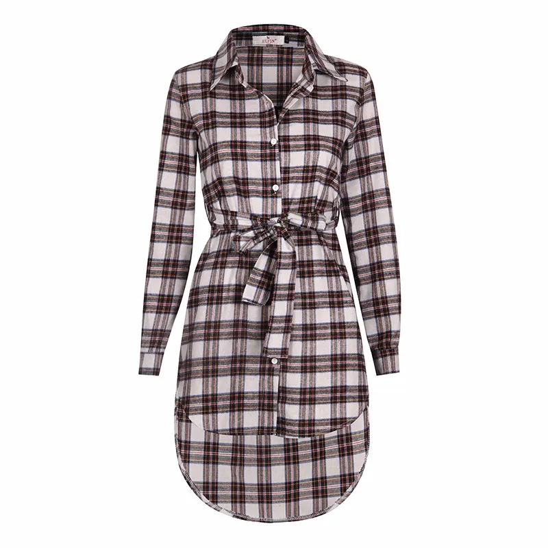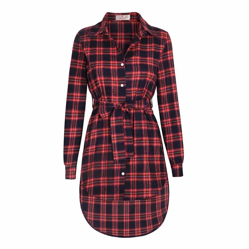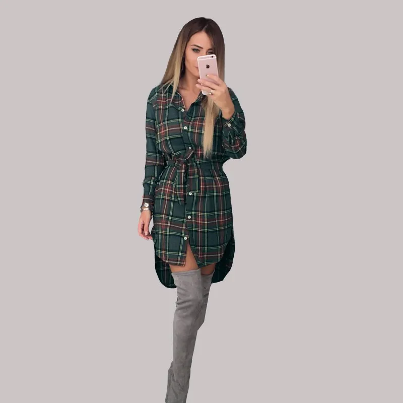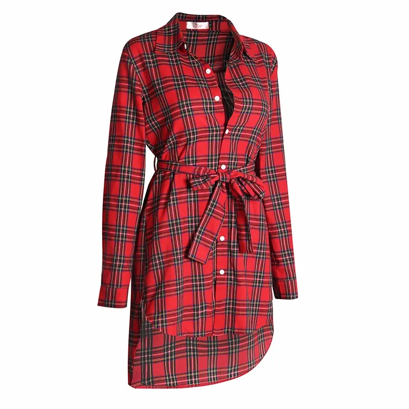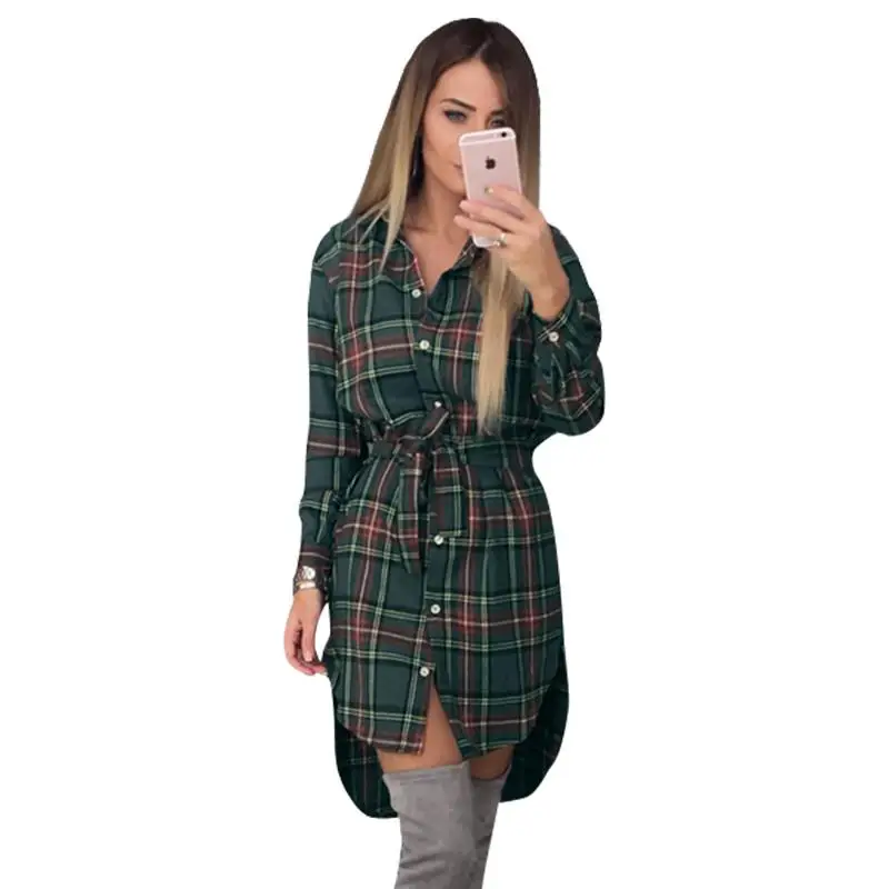 button: plaid long blouse women