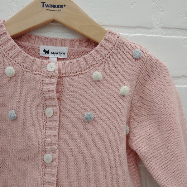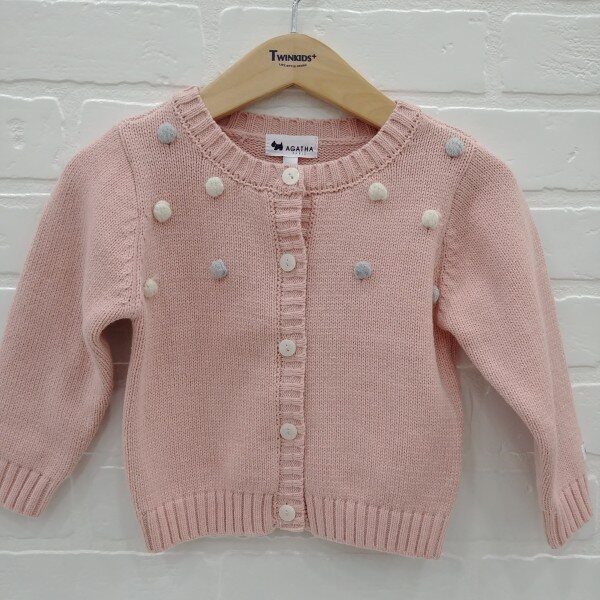 여아 기본 가디건으로 메탈사가 섞인 폼폼장식을 해주어 귀엽게 착장가능.