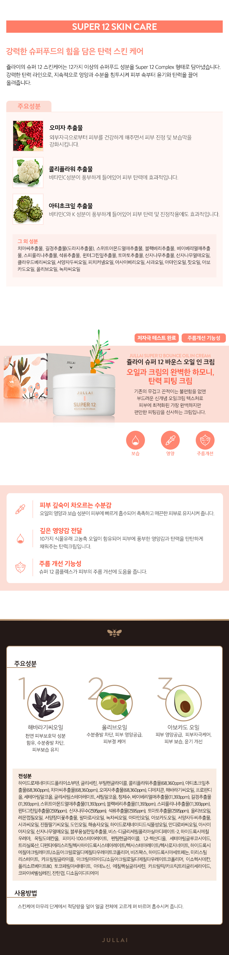 | - 쥴라이 슈퍼 12 바운스 에센스 오일 인 크림 50ml (본품) - 쥴라이 슈퍼 12 바운스 씬오일 1ml*10 - 쥴라이 슈퍼 12 바운스 오일 인 마스크 30g*3