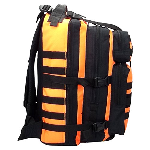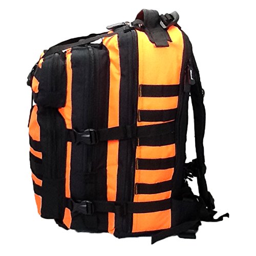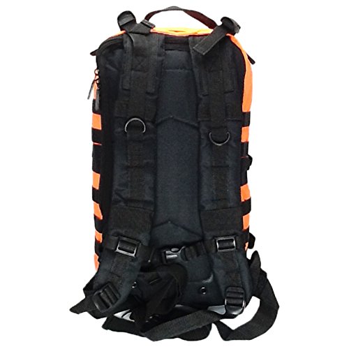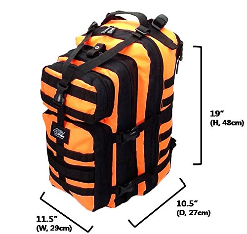 -. Feature : Tactically compact for outdoor use! / Orange, Well padded back & strong shoulder strap / Capacity: 2400 cu. in. / Size: 19"(Height) x 11.5"(Width) x 10.5"(Depth) / 3 built compartments, Multiple MOLLE style straps and compression straps