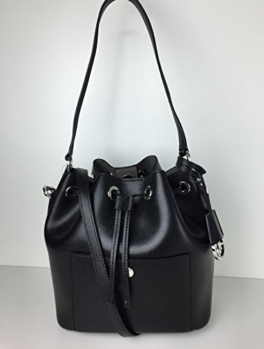 -. Brand : Michael Kors -. Color : black -. Department : womens -. Feature : Greenwich bucket handbag takes a modern staple to a new level of luxurious utlimate travel / Logo charm for a sophisticated finish / Crafted from Michael Kor's signature Saffiano leather / Multitude of pockets for organization / Adjustable Strap: 21"-24" Top Handle: 11" -. Label : Michael Kors -. Manufacturer : Michael Kors -. MPN : mkhbGREENWICHbucket PT -. PackageQuantity : 1 -. PartNumber : mkhbGREENWICHbucket PT -. ProductGroup : Shoes -. ProductTypeName : HANDBAG -. Publisher : Michael Kors -. Size : Medium -. Studio : Michael Kors -. Title : Michael Kors Greenwich Women's Medium Bucket Handbag The Michael Kors Medium Greenwich 30F5GGRM2U Buckle Leather Handbag takes a modern staple to a new level of luxurious ultimate travel companion! This features: Made of Saffiano Leather, magnetic snap closure, and drawstring closure, as well as adjustable crossbody strap, interior pocket, and MK logo charm. Michael Kors is a globally awarded designer who produces luxury items that carry unfaltering designs which are sure to withhold the tests of time. These products are built to last and stay up with latest fashions and styles, leaving you with the most desired looks. Approximate Measurements: Length: 13.5" Height: 9.5" Top Handle Strap Drop: 11" Style: GREENWICH 30F5GGRM2U