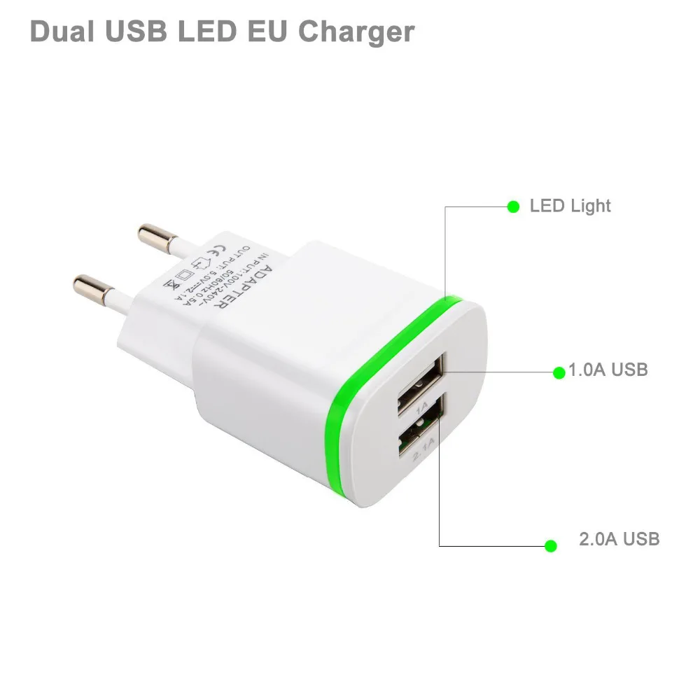 Package:1 x Wireless charger (black) , 1 x 2-Port USB EU Plug Charger (White)