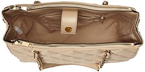 Quilted tote with chain detail and metal luggage tag. Dim in cm:36*28*10