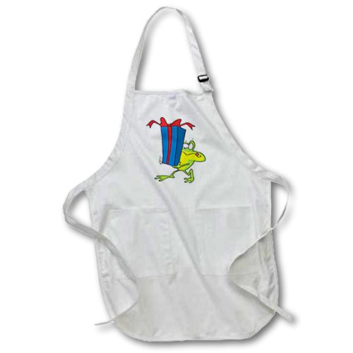 3dRose Funny Giving Present Froggy Frog Animal Cartoon - Medium Length Apron, 22 by 24-Inch, with Pouch Pockets (apr_104073_2)