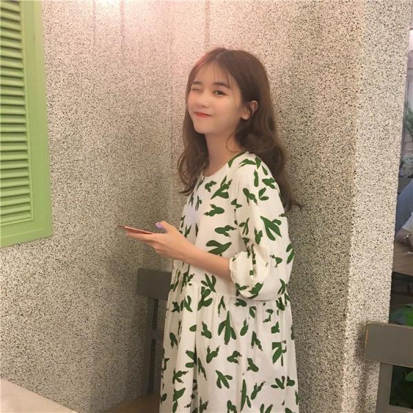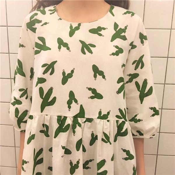 レトロなサボテン柄の可愛いワンピース。