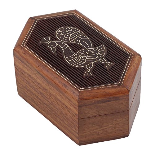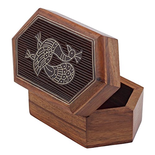 Fine Craft India Wooden Ring Jewelry Box Fine Carving and Brass Inlay Work MN-WJB_1_5inch