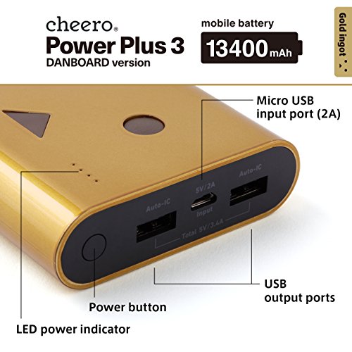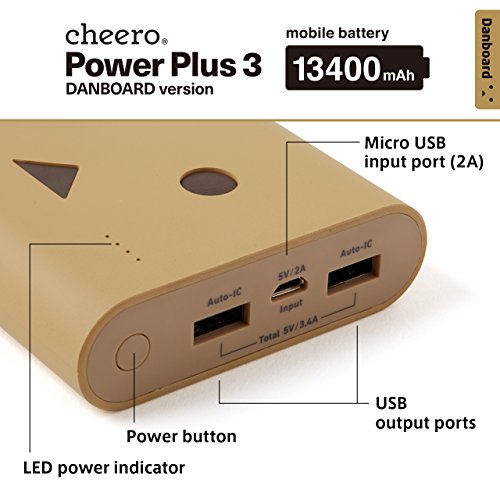 -. Title : cheero Power Plus 3 13400mAh DANBOARD - Portable charger [ Panasonic Premium Battery Cells ] 2-Port High Power Output 3.4A for iPhones, iPads, Androids, Smartphones, Tablets and more 【AUTO-IC Function】