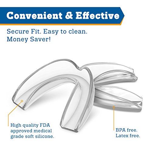 Features: ? Alleviates TMJ issues. ? Fits comfortably - not bulky. ? Can be used during sports. ? FDA approved silicone (U.S. Food and Drug Administration 21CFR 177.1350). ? Comes with a protective case. ? Perfect for men, women, and children.