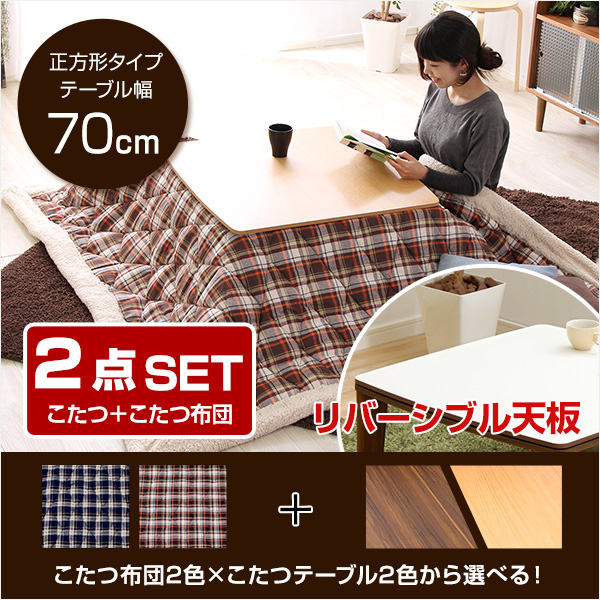 ●70cm幅・正方形のこたつテーブルとこたつ掛布団が付いた2点セット!