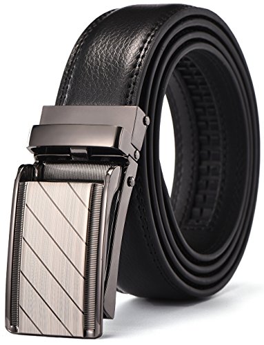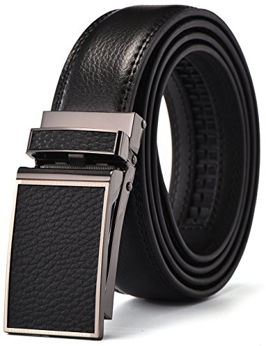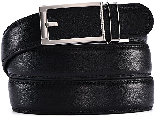 NO MORE HOLES - XQMART Fashion Ratchet Belt provides 38 unique adjustments for a superb comfortable fit. Easy removable buckle allows you to cut the belt to your ideal size to give a primmer and custom tailored appearance!