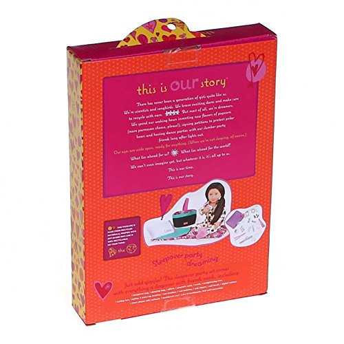 -. Feature : Fits most 18 in / 46 cm dolls / Just add giggles! This sleepover party set comes with everything a sleepover with friends needs! / Includes: 1 sleeping bag, 1 pillow, 1 cosmetic case, 1 comb, 1 straightening iron, 1 curling iron, 1 bottle, 3 make up brushes, 1 eye shadow, 3 nail polishes, 1 nail clipper, 1 nail brush, 1 digital camera, 1 smart phone with earbuds, 1 toothbrush 1 tube of toothpaste and 1 OG Outfitters catelog.
