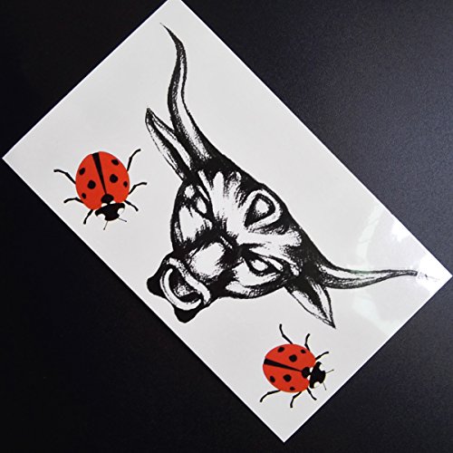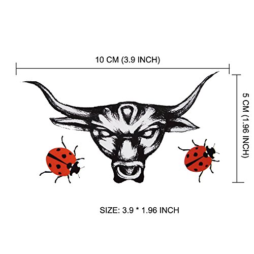 -. Feature : ★ Non-toxic 100% safe! Lasts for 3-7 days, 3 sheets in each package / ★ Arm tattoo measures 7.9" x 10.6", chest tattoo 6.7'' x 6.7'', bull tattoo 1.9'' x 3.9" / ★ Easy to apply on your face, hand or body in 1 minutes / ★ Remove easily with soap and baby oil or rubbing alcohol / ★ Ideal for fairy theme birthday party, share with your friends