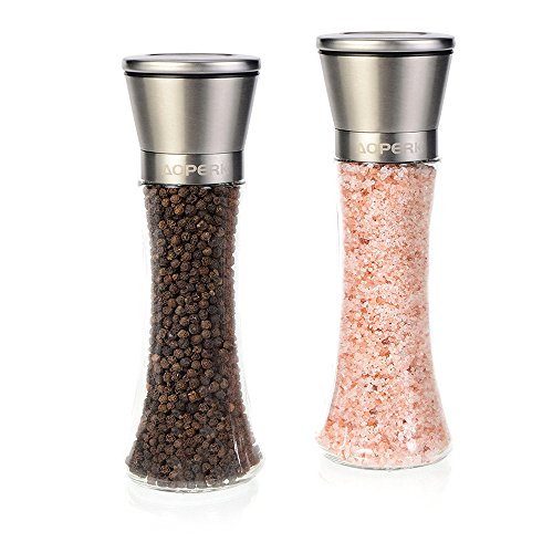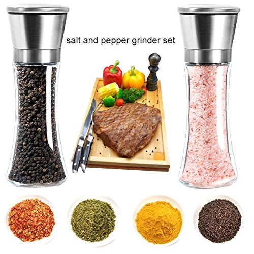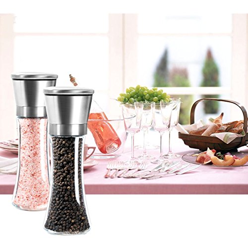 Salt and Pepper Grinder Glass Mill Set of 2-Hand-Operated Ceramic Grinder Stainless Steel with Clear Glass Body ,5 Grade Adjustable Ceramic Rotor
