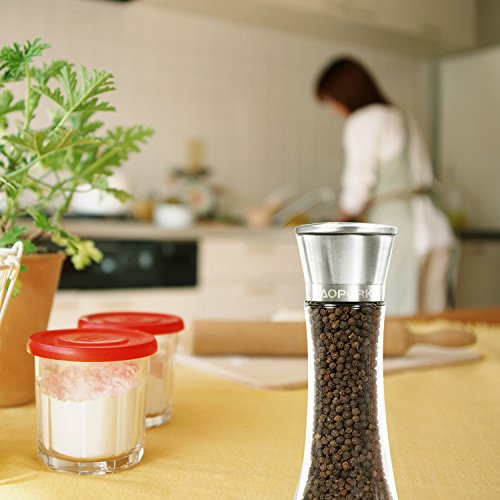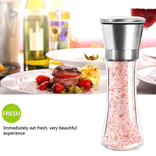 Maintain the Freshness of your favorite spices with these Firmly Closed salt and pepper mills glass grinders! They contain a sealing lid that fixes perfectly, keeping your ground spices freshly, away from moisture and dust, and free of undesirable residues on your table.
