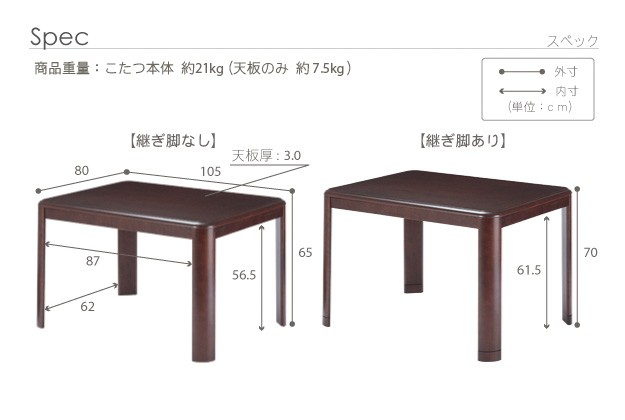 サイズ(cm):幅105x奥行80x高さ70(65)・約21kg