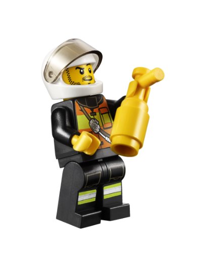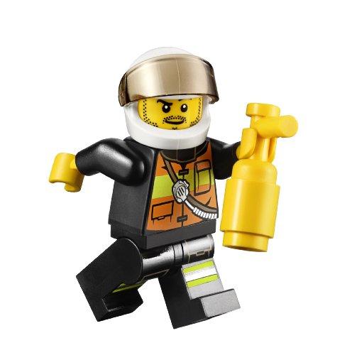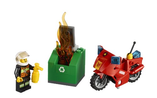 -. Feature : Includes firefighter minifigure with fire extinguisher. / Features Fire Motorcycle and a recycling container. / Also includes 2 flames. / Recycling container features opening lid.