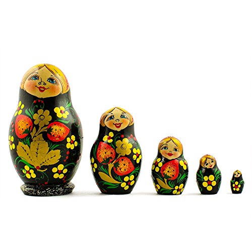 -. Title : 4'' Set of 5 Strawberries Wooden Russian Nesting Dolls
