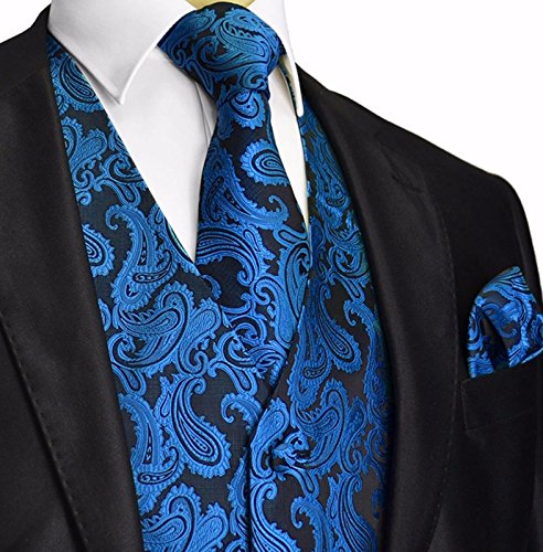 -. Binding : Apparel -. Brand : Brand Q -. Color : Blue, Black -. Department : mens -. Feature : Paisley Pattern / Besom Pockets / Microfiber Material / Five Button Vest and Full Back Vest with Adjustable Belt / This Three Piece Set Includes: Tuxedo Vest- Neck Tie and Matching Handkerchief -. PackageQuantity : 3 -. ProductGroup : Apparel -. ProductTypeName : SUIT -. Title : Men's 3pc Paisley Vest NeckTie Pocket Square Set For Suit or Tuxedo