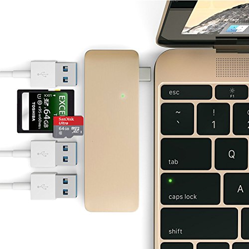 USB C 3.1 Hub Adapter for 12 inch Macbook Pro 2016 13 inch 15 inch,5 in 1 Multiport USB Dongle 3.0 Type A Port Micro SD Memory Card Reader (GOLD)