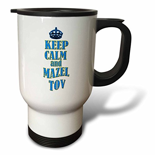 3dRose tm_218145_1 Keep Calm and Mazel Tov Popular Jewish Saying Israel Jerusalem Travel Mug, 14 oz, White