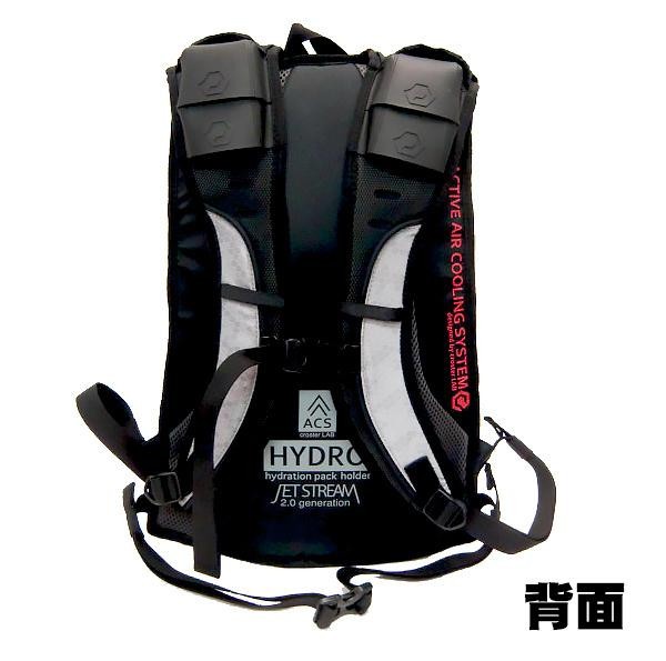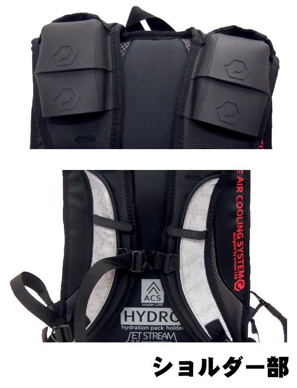 肩パッドのエアインテークから積極的に空気を取り入れ、背中面から排出する事で背中の熱を排出する構造になっています。反射素材にグラフィックプリントを施し、デザインと機能を両立。夜間でも目立ちます。