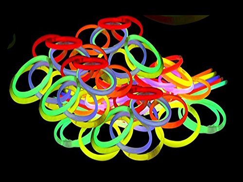 GLOW STICK BRACELETS: Perfect For Dance Parties, Halloween Costumes, Light up Party Favors For Birthday Parties Or to DAZZLE THE NIGHT WITH AN ASSORTMENT OF COLORS! Snap and shake the 8" glow sticks and connect the ends with the connectors to form bracelets. This Glow Bracelet Assortment is perfect for party favors and making accessories to wear on Halloween night!