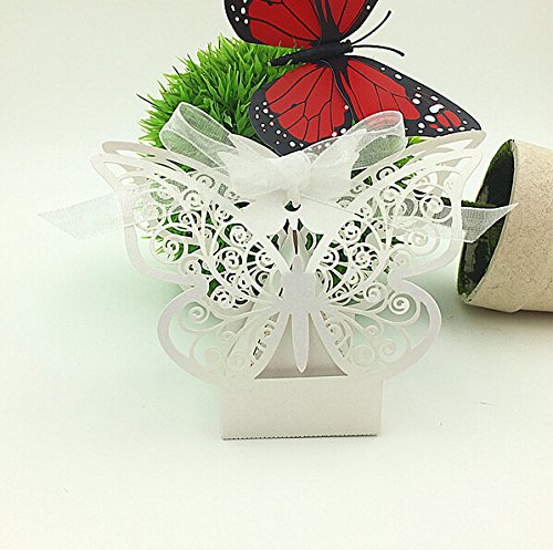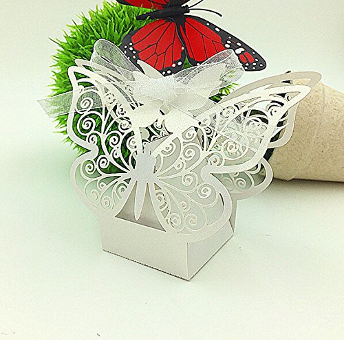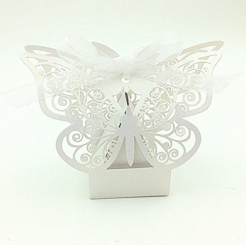 Joinwin® Pack of 50pcs Butterfly Wedding favor Box candy box,wedding favors and gifts,wedding supplies,wedding box for candy,paper box (White)