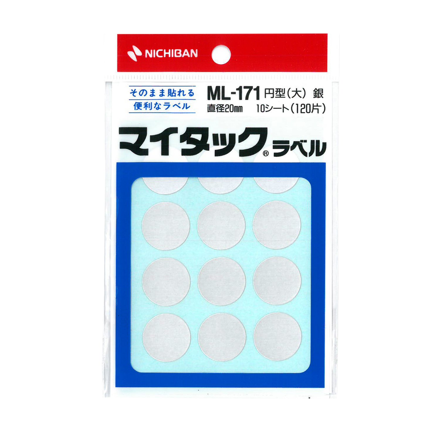 【サイズ】直径20mm 【入数】12片×10シート(120片入) 【基材】上質紙 【粘着剤】アクリル系 【ご注意】プリンタは対応してません。