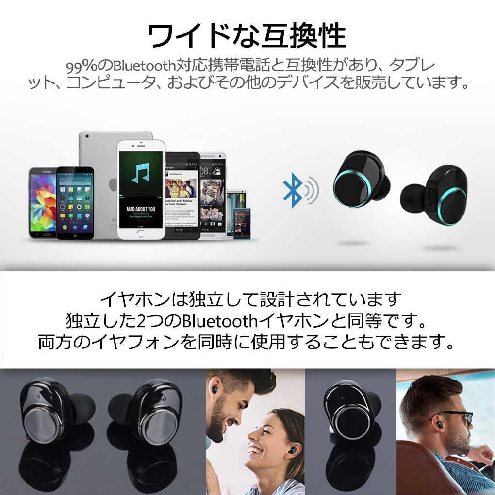 ♫【対応デバイス】Bluetoothイヤフォンは、iOSやAndroidデバイスを含むすべてのBluetoothデバイスをサポートします。それは、iPhone 5/6/7/8、サムスン、ソニー、モトローラ、LG、アンドロイド携帯電話、ゲーム、運転、オートバイ、トラックやその他のBluetoothデバイスです。