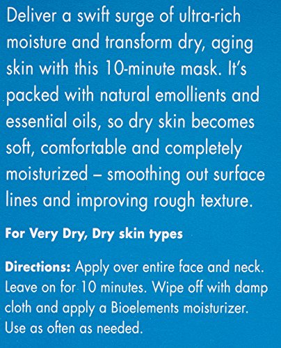 Deliver a swift surge of ultra-rich moisture and transform dry, aging skin with this 10-minute mask. It's packed with natural emollients and essential oils, so dry skin becomes soft, comfortable and completely moisturized - smoothing out surface lines and improving rough texture.Feature