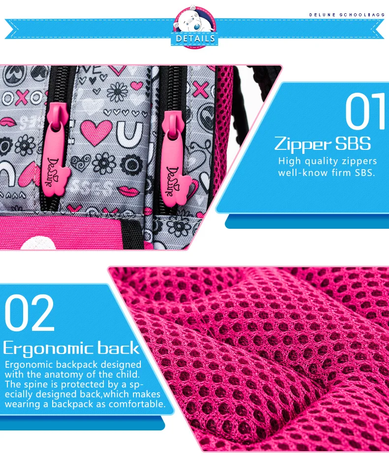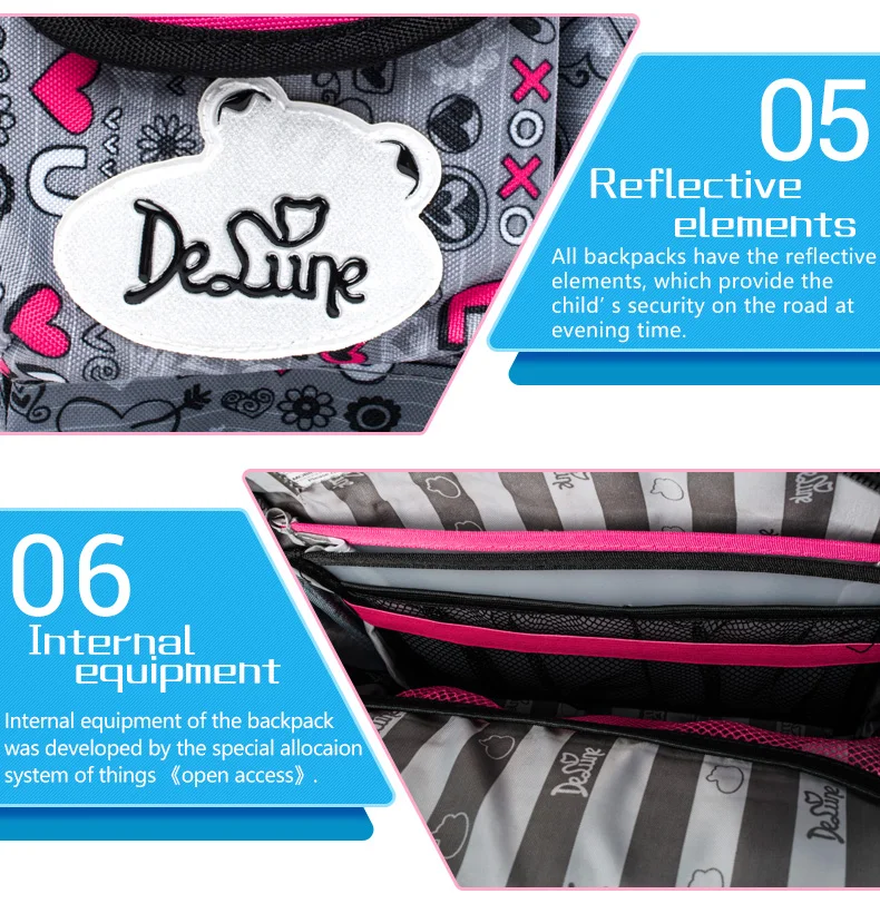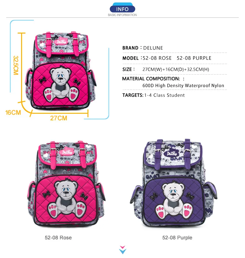 delune防水子供キッズ整形外科スクールバッグ女の子グレード1-4バックパックmochila infantil大容量漫画通学