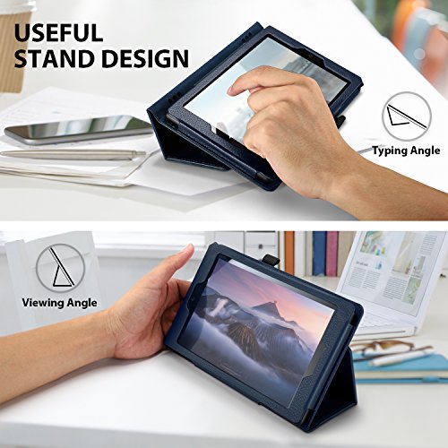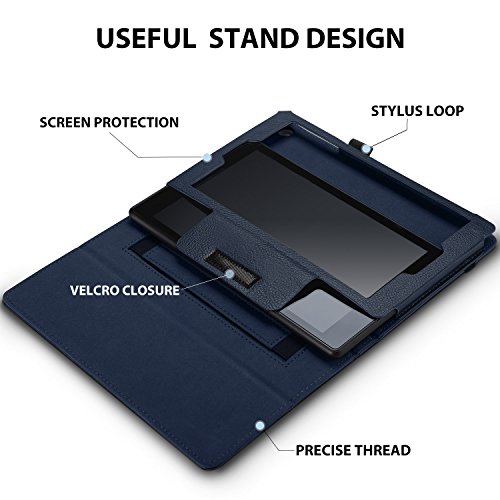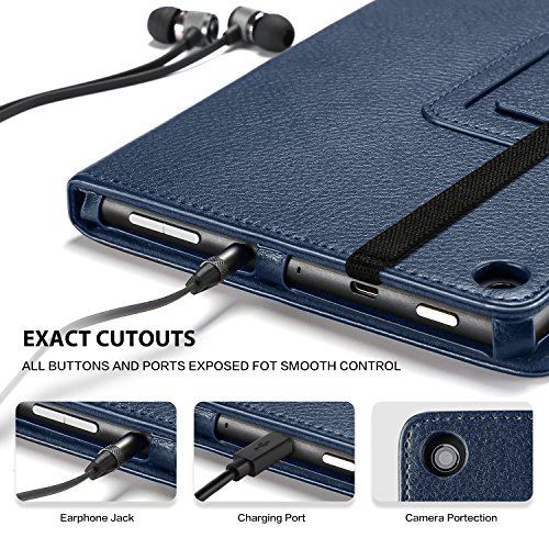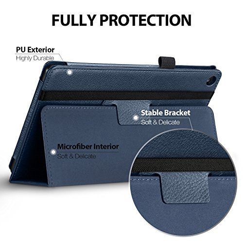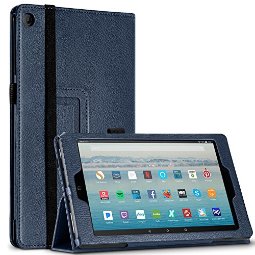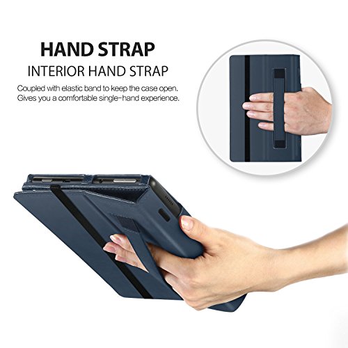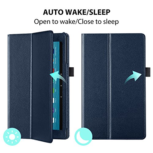 Case for All-New Fire HD 10 Tablet with Alexa (7th Gen, 2017 Release),Premium Leather Folio Folding Stand Cover Case with Hand Strap for Fire HD 10 Tablet [with Auto Wake / Sleep] (Dark Blue)
