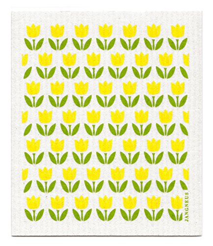 Swedish Dishcloth, (YE) Set of 4 YELLOW - Tulips, Bikes +