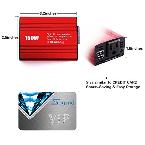 150W Car Power Inverter Charger DC 12V to 110V AC Converter with 3.1A Dual USB Charger Soyond