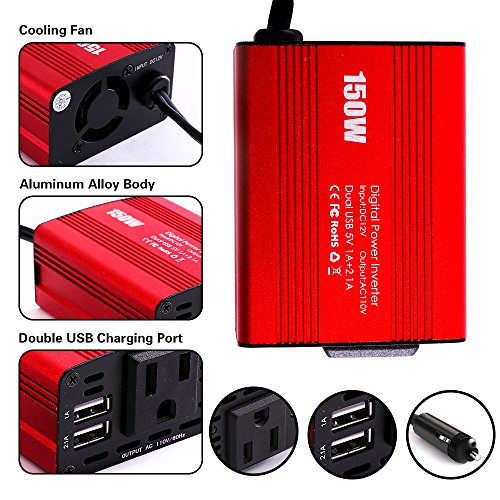 - Premium 150w car power inverter with 2 USB ports and AC outlets. Dual USB ports can charge most phones and tablets simultaneously (Max 3.1A total output), while AC outlets great for charging laptop, breast pump, CPAP machine, nebulizer, game console, kindle, TV, DVD players, lights, iPad, and other electronic devices