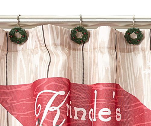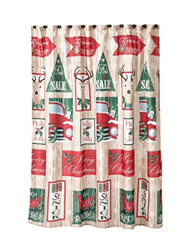 Christmas Shower Curtain Retro Truck and Signs with 12 Matching Wreath Hooks Set