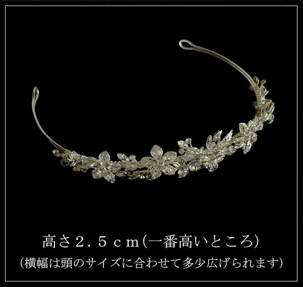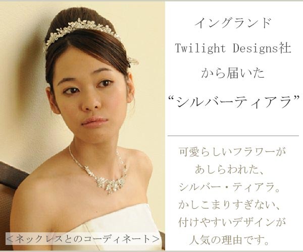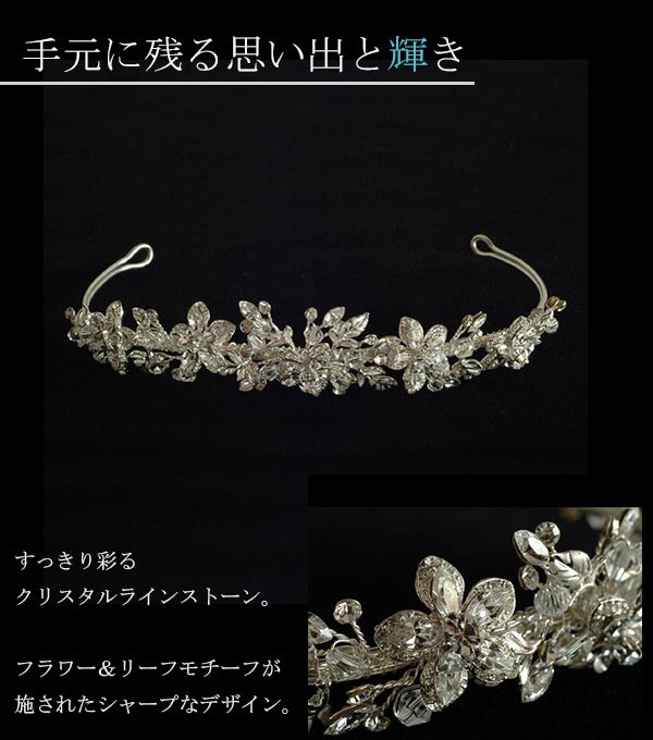 可愛らしいフラワーがあしらわれた、シルバー・ティアラ。 かしこまりすぎない、付けやすいデザインが人気の理由です。
