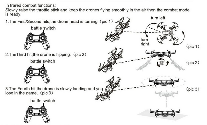 Function: 360 degree flip, up, down, left, right, forward, backward, combat function, speed-up mode