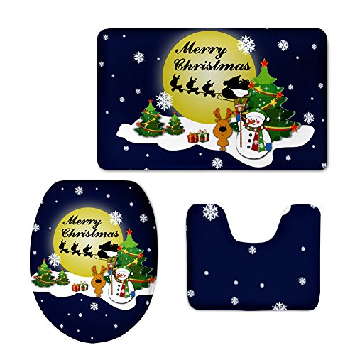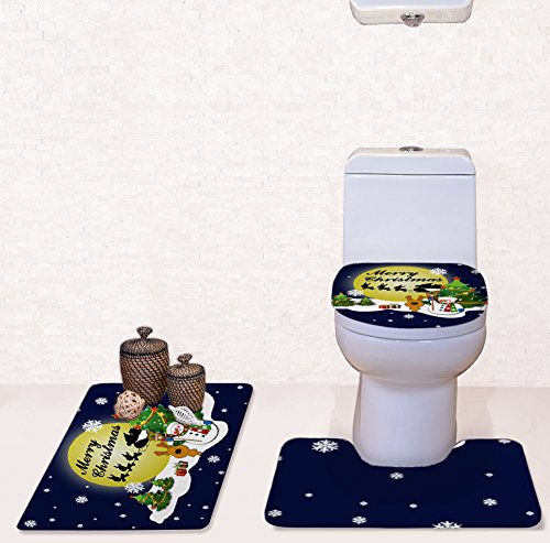 Partypeople 3 Piece Bathroom Rug Set Christmas Home Decorations Bath Mat, Contour Rug, Toilet Lid Cover (Tree)