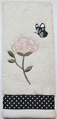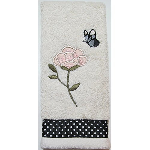 Product DescriptionMarche aux Fleurs is an elegant mix of flowers, Butterflies, and a pleasing palette. The cotton Terry tip towel has printed ribbon trim and embroidery.0