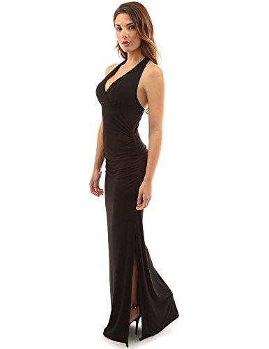 Product Description PattyBoutik Halter Empire Waist Ruched Side Slit Maxi Dress. Model in pictures is 5 feet 8 inches (173cm) tall wearing a pair of 3 inches high heels. 0