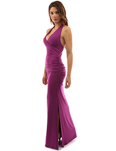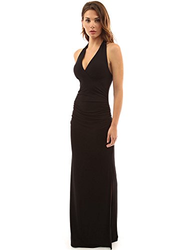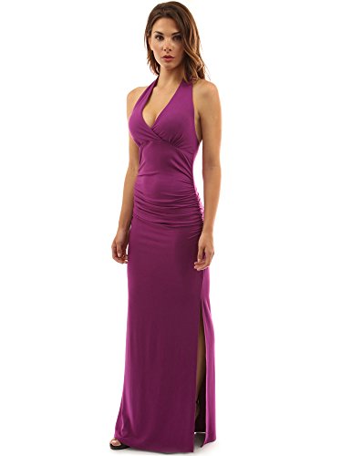 PattyBoutik Women's Halter Empire Waist Ruched Side Slit Maxi Dress