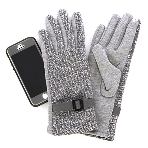 Product DescriptionTweeded solid cotton gloves Grey Smart phone touch finger tips, faux leather with buckle for design 70% Cotton 20% Wool 10% Polyester...0