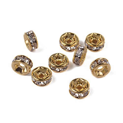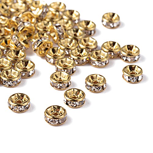 - Brass Rhinestone Spacer Beads, Grade AAA, Straight Flange, Nickel Free, Metal Color, Rondelle, Crystal