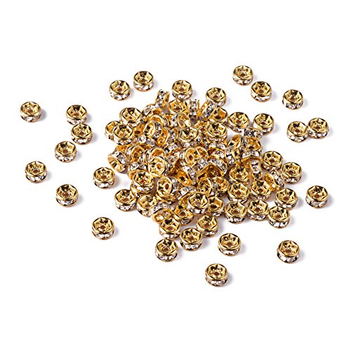 Pandahall 200-piece 6mm Crystal Rondelle Spacer Bead Gold Metal Color Brass Rhinestone Spacer Beads, Grade AAA, Straight Flange