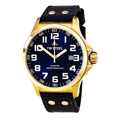 -. Title : TW Steel Pilot Blue Dial Rose Gold PVD Stainless Steel Blue Leather Mens Watch TW405